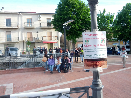 Con la ricorrenza del Primo Maggio, mai festeggiata in paese, abbiamo colto l’occasione per parlare di lavoro ai nostri concittadini e di presentare la lista dei candidati alle persone intervenute. La manifestazione si è svolta tranquillamente e gli interventi sono stati mirati ad offrire delle soluzioni per la creazione di lavoro nel nostro paese. Sono stati suggeriti temi come cooperative in grado di valorizzare e sviluppare la vocazione agricola del nostro paese, lo sviluppo dell’area industriale e proposte per trasformare il comune in un piccolo punto di incontro domanda/offerta lavorativa.